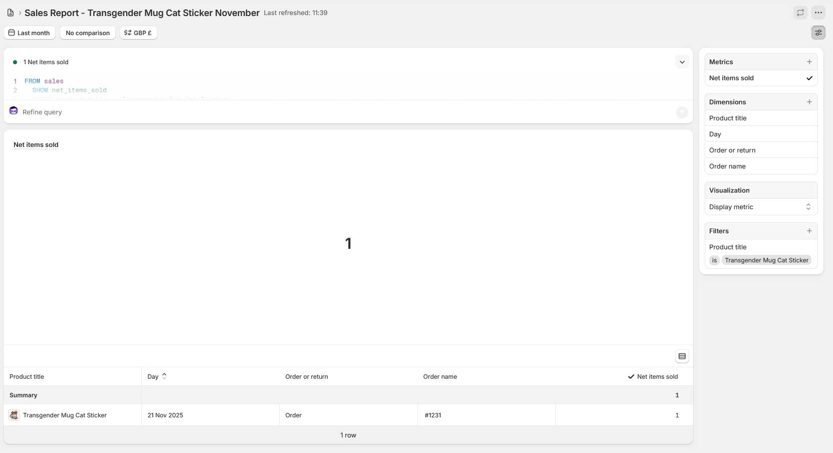 On my shopify store I made one sale: