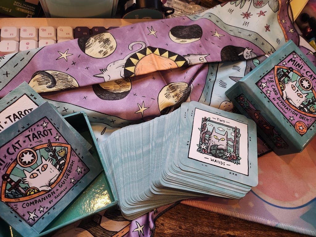 Get the full 78-card cat tarot deck and the matching tarot cloth as a discounted set!